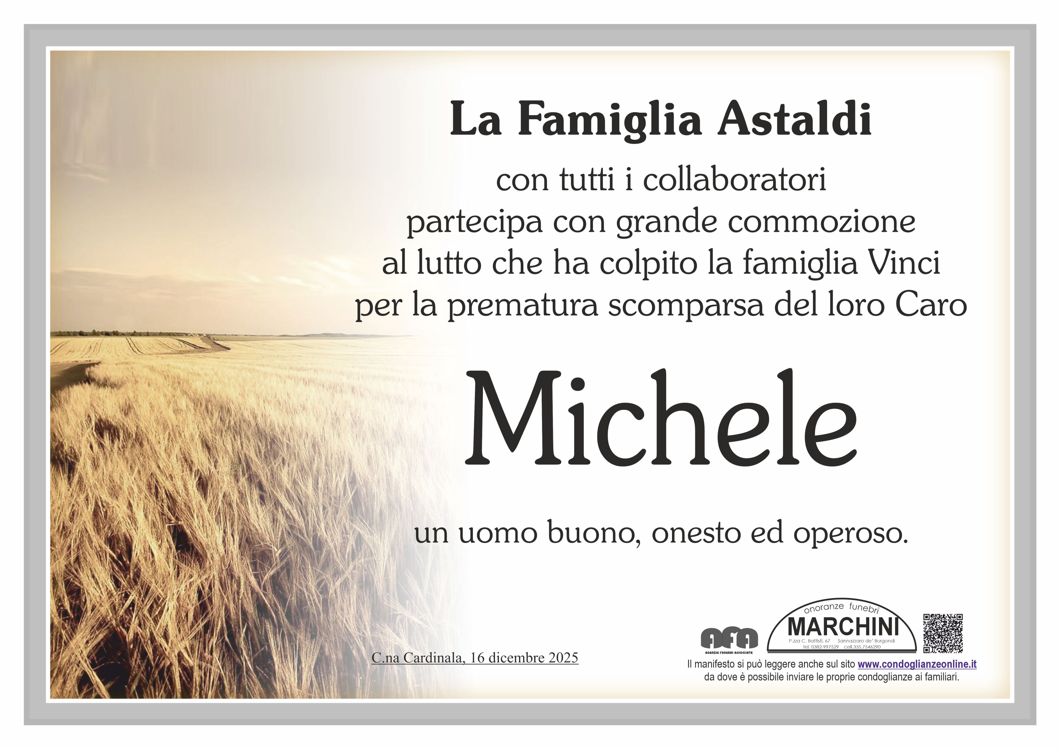 Home page \ I necrologi \ MICHELE VINCI