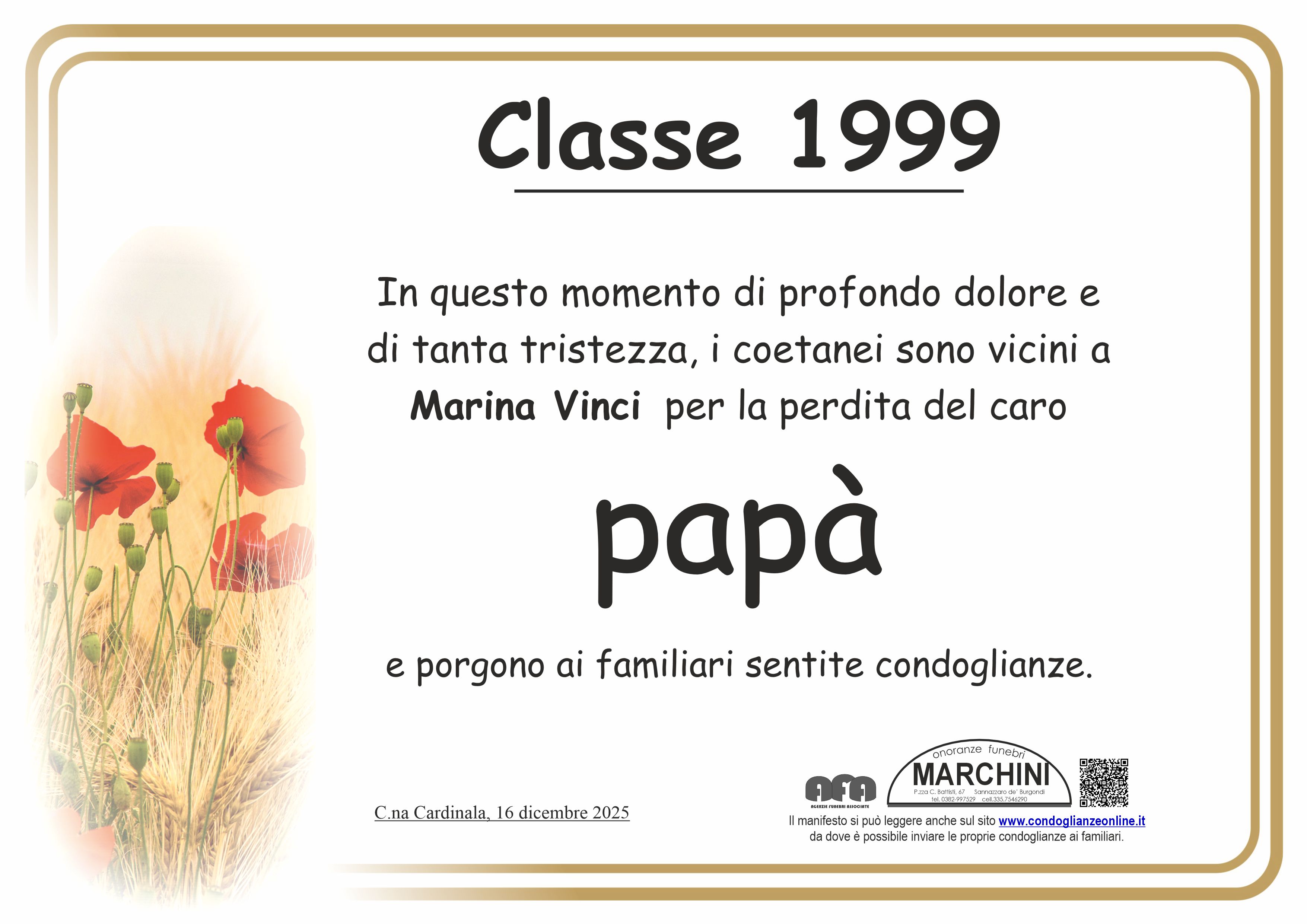 Le nostre piu' sincere e sentite condoglianze Fam PAPA