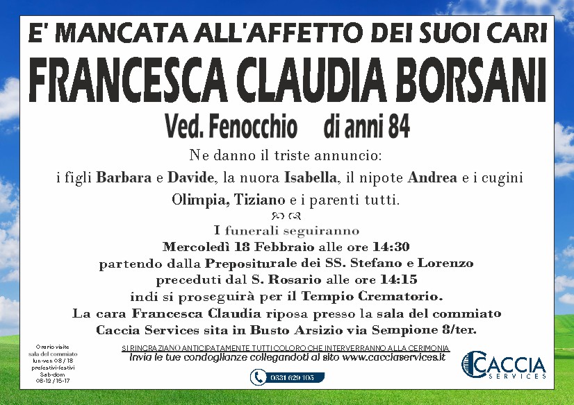Home page \ I necrologi \ FRANCESCA CLAUDIA BORSANI