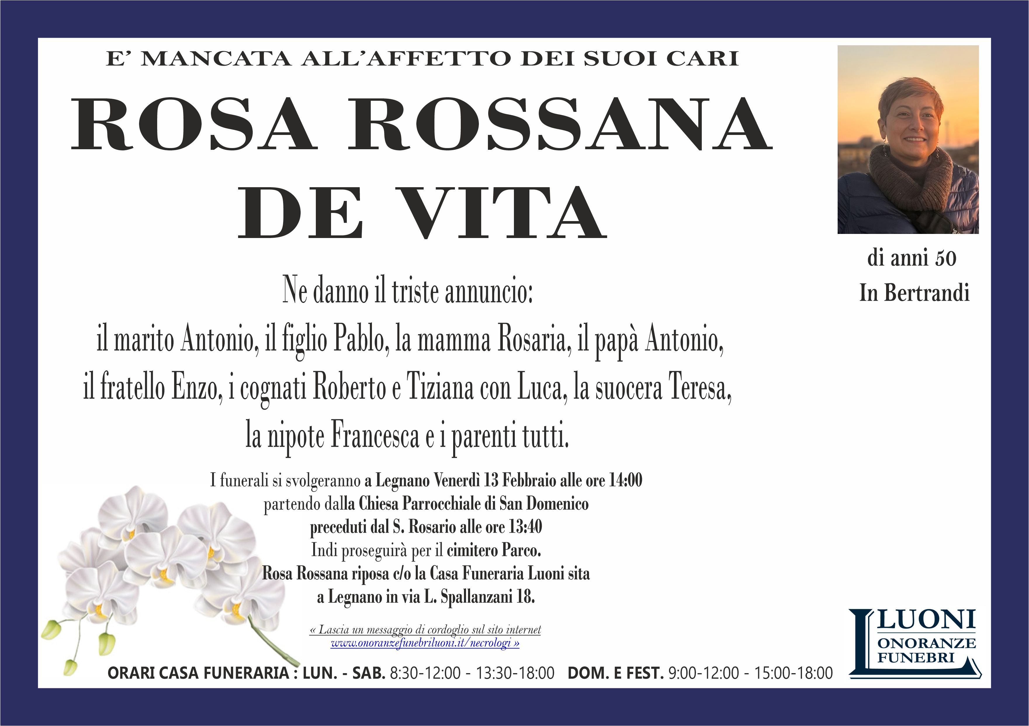 Home page \ I necrologi \ ROSA ROSSANA DE VITA