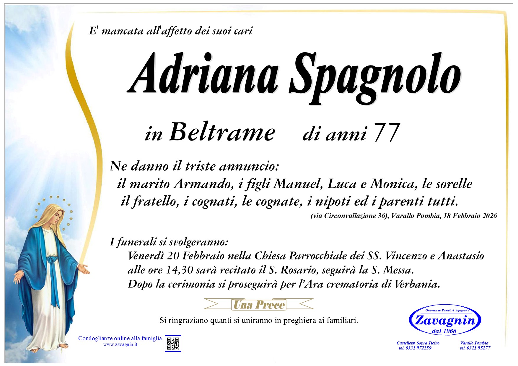 Home page \ I necrologi \ ADRIANA SPAGNOLO