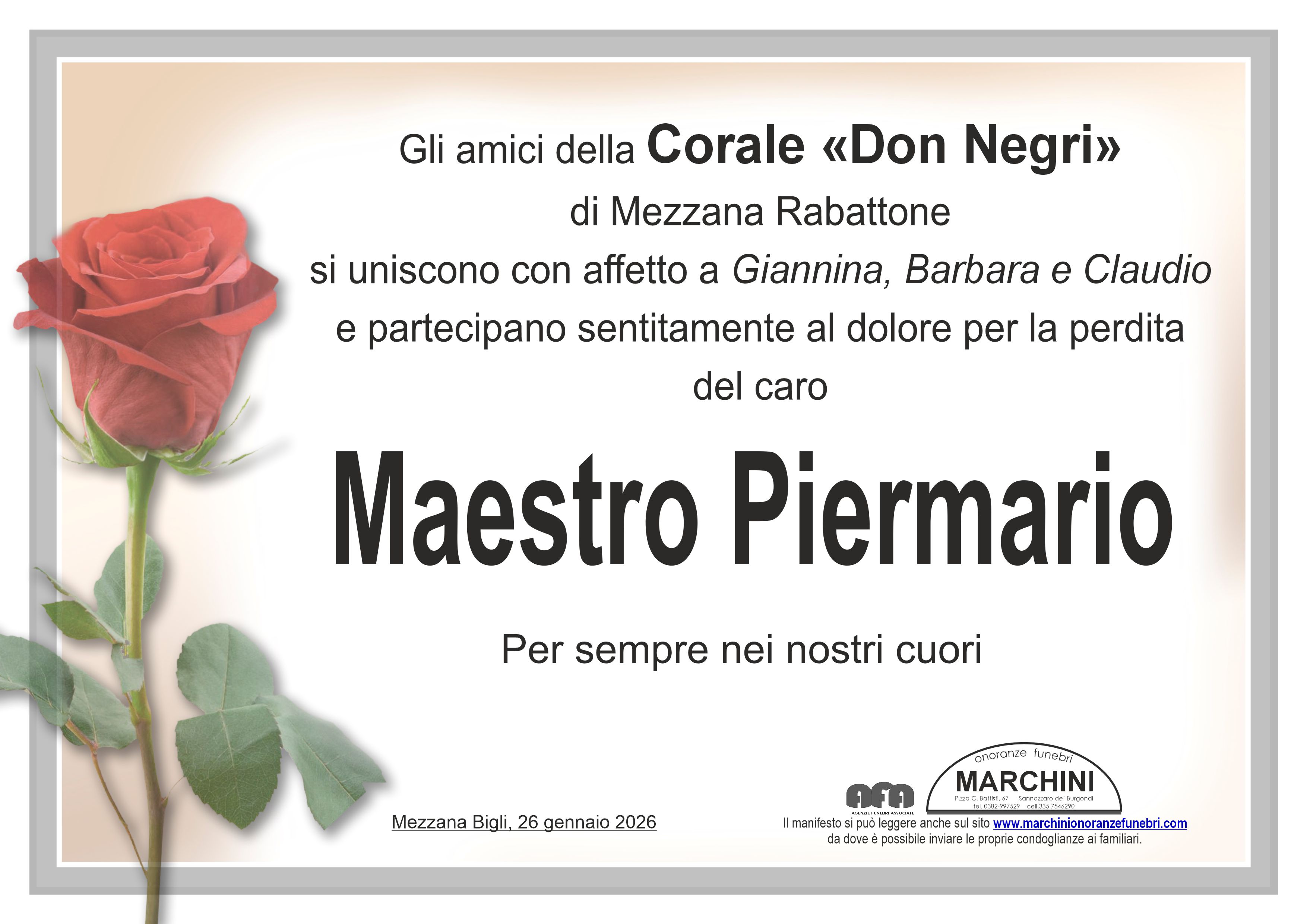 Le più sentite condoglianze Mauro Elena Fausta Secondi