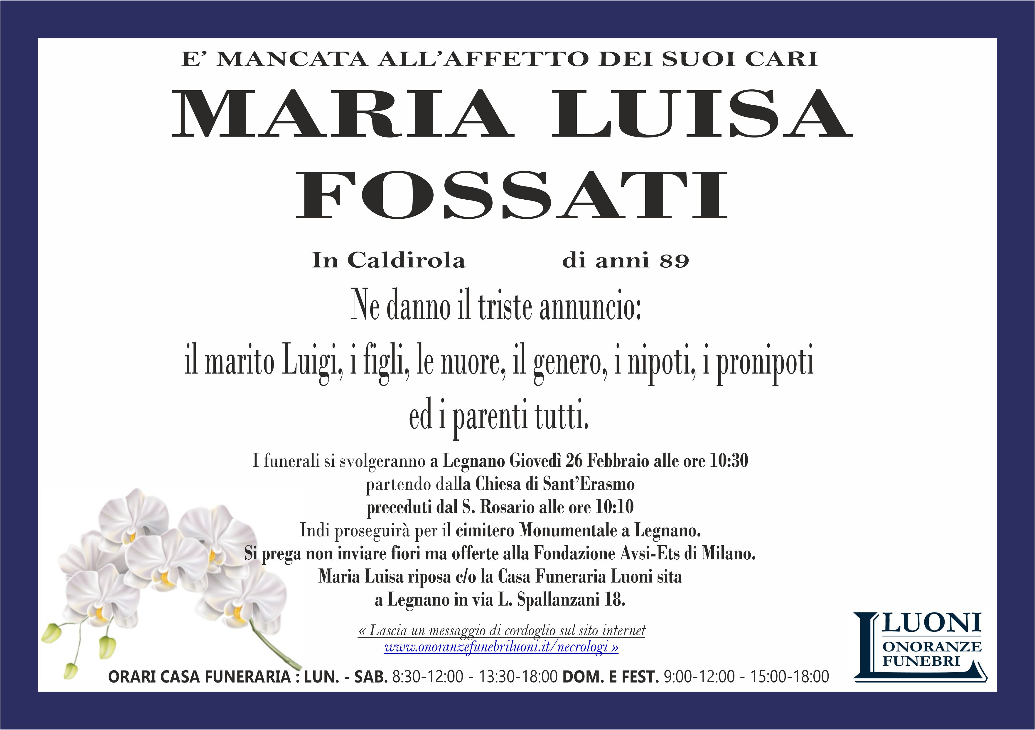 Home page \ I necrologi \ MARIA LUISA FOSSATI